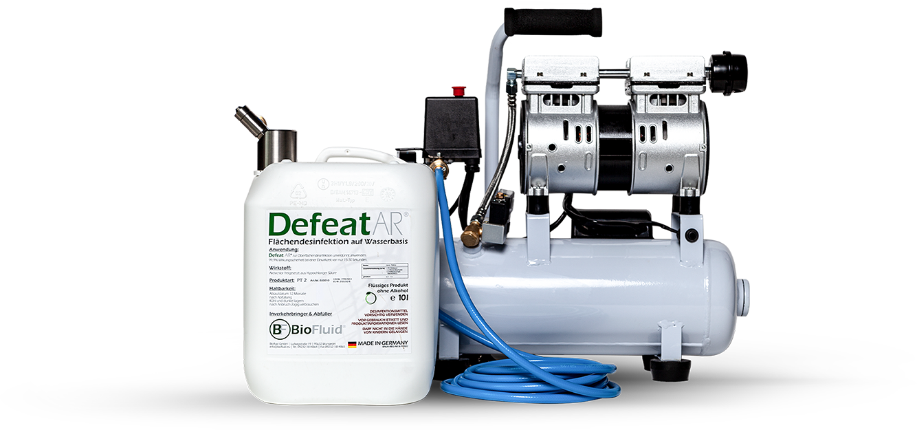 Az innovatív porlasztó a biológiai fertőtlenítőszerünket mikroszkopikus méretű részecskévé alakítja. A levegő minden felületre és tárgyra viszi a fertőtlenítőszert. Rövid szellőztetés után a helyiség ismét teljes mértékben használható. Nedvesség vagy maradványok kizárva.